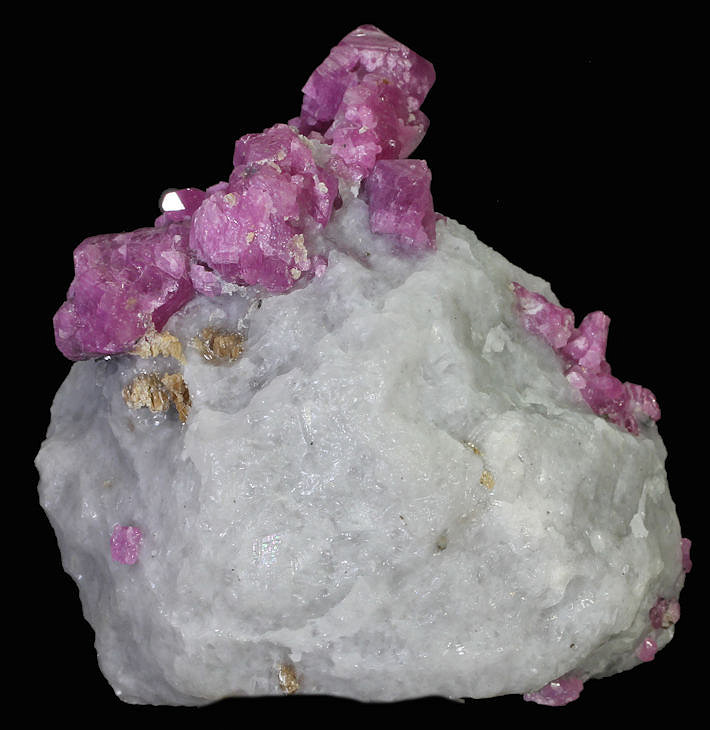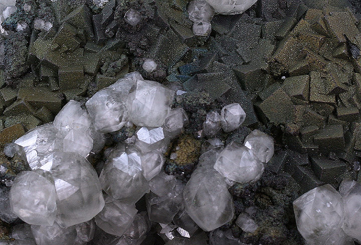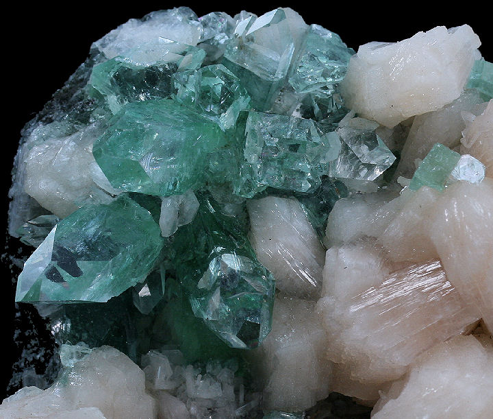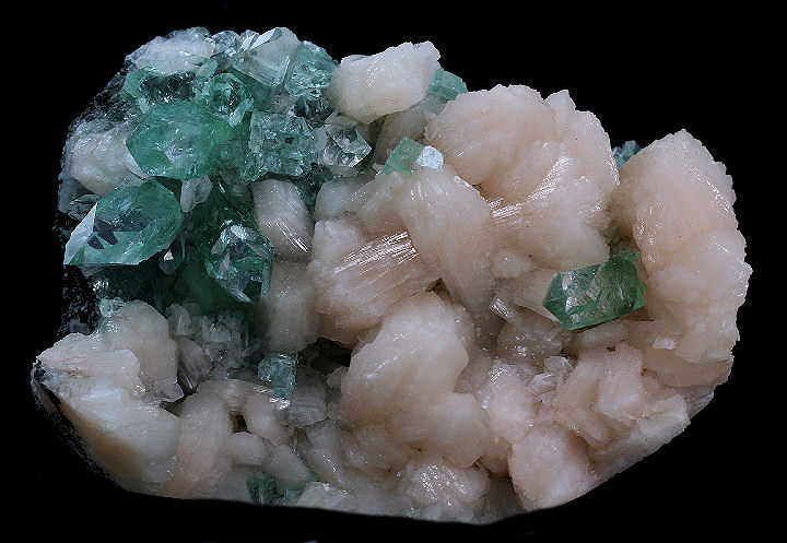 Apophyllite with Mordenite, Calcite on Galena, Quartz with Calcite, Fluoraphyllite with Stilbite, Datolite with Apophyllite & Arsenopyrite, Gypsum var. Selenite, Aegerine on Feldspar, Chalcopyrite on Sphalerite, Calcite Crystals on Fluorite, Pyromorphite, Pyrite, Honey Colored Fluorite, Green Quartz var. Prasem on Andradite and Ruby Crystals on Marble.