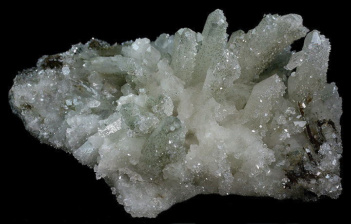 The photo only partially captures the scintillating luster of this plate of Quartz covered with fine sparkly Apophyllite crystals.