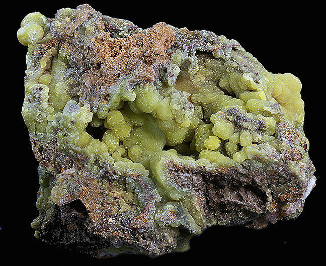 A vug-like formation encrusted with dark lemon colored, botryoidal Pyromorphite, which could be confused with Mimetite, but its' not !