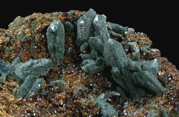 Check out the following mineral specimens on this page: Celestine, Chalcopyrite with Quartz, Calcite & Ferberite, Spessartine Garnets with Smoky Quartz & Orthoclase, Cuprian Adamite on Limonite, Azurite on Malachite, Fluorapophyllite, Hemimorphite, Barite with Calcite & Siderite, Danburite, Chalcopyrite with Sphalerite & Quartz, Vanadinite, Copper Nuggat,