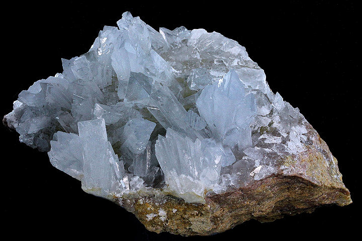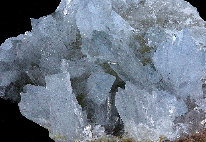 Gorgeous cluster of chiseled translucent, pale blue Celestine  crystals. In fine condition.